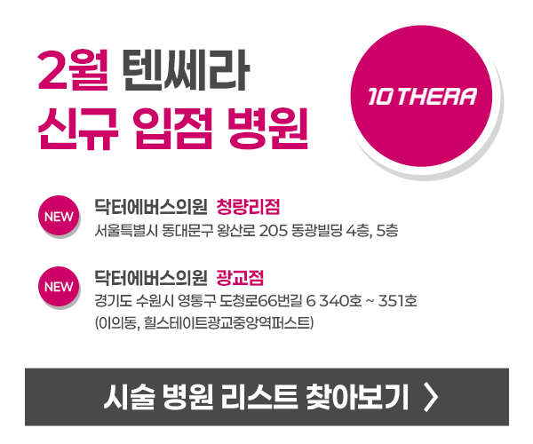 05텐쎄라 시술 후, 다른 시술이나 관리를 받아도 될까요?하이푸 시술은 피부 조직 깊은 곳으로 초음파 열에너지를 전달하는 것이므로, 시술 직후 보톡스, 필러, 실리프팅, 레이저 및 고주파 시술 등이 가능합니다. |